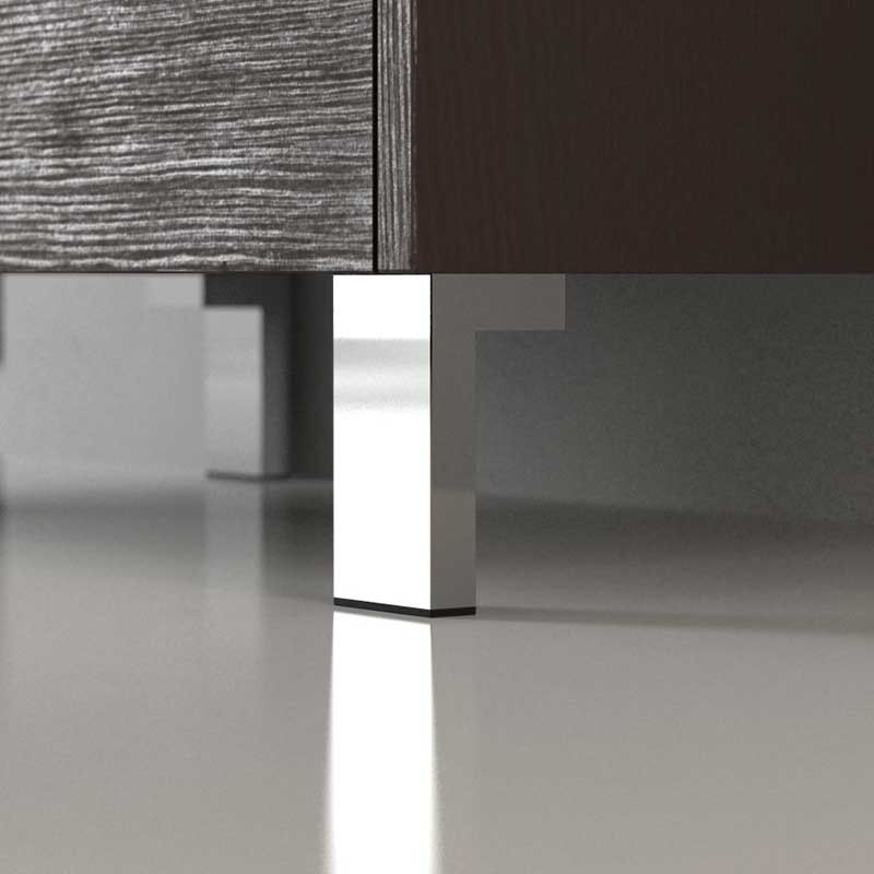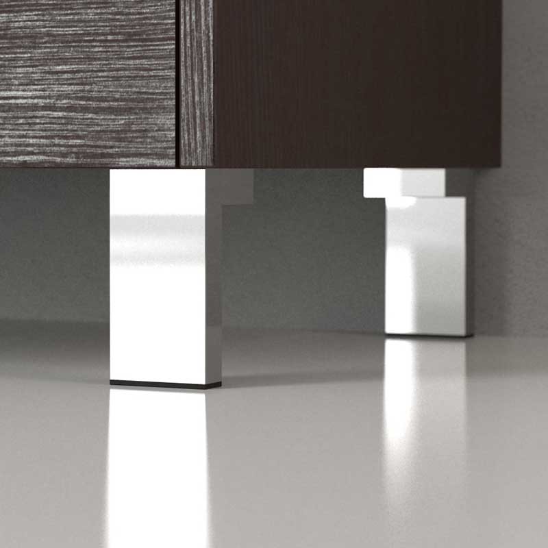 Set de 4 patas de 12 cm de altura ajustáveis, forma retangular e acabamento cor cromo brilho para sustentar móveis de casa de banho.