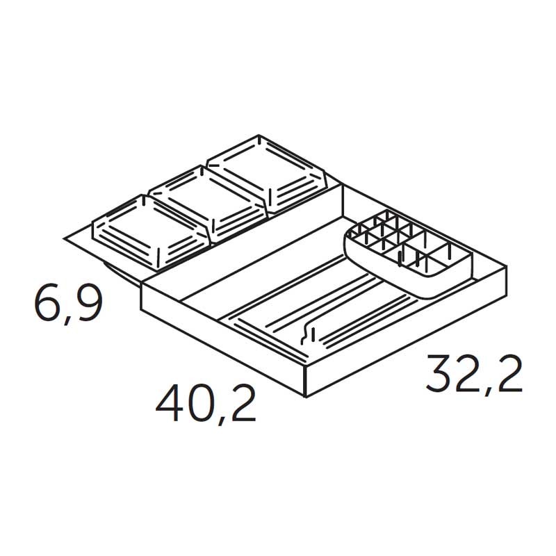 Organizador de Coycama para gavetas de móveis de casa de banho. Dispõe de várias bandejas removíveis e independentes. Medidas (largura x altura x profundidade): 40,2 x 6,9 x 32,2 cm