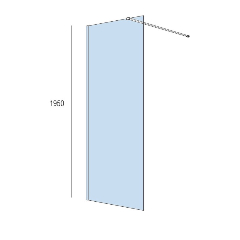 A divisória de passagem HEAVEN conta com vidro temperado de 8mm e perfil de alumínio em prata brilho, proporcionando elegância e durabilidade. Equipada com tensor de fixação fixo à parede e tratamento anti-cal para uma limpeza sem esforço.