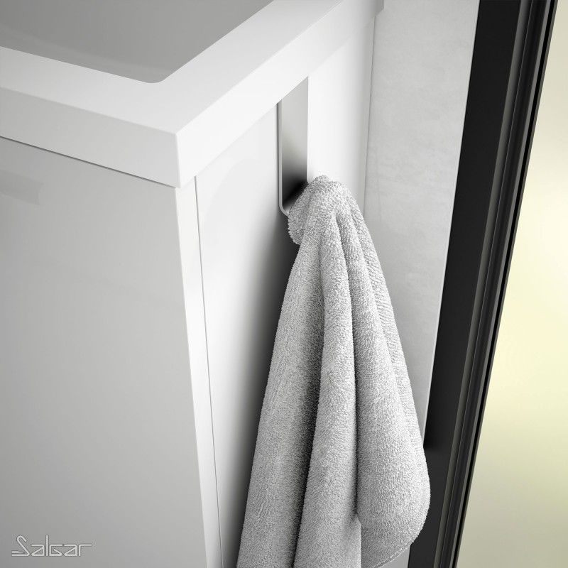 O cabide Minimal oferece um design inovador que permite que você pendure sua toalha convenientemente na lateral do armário do banheiro, mantendo-a sempre ao alcance.