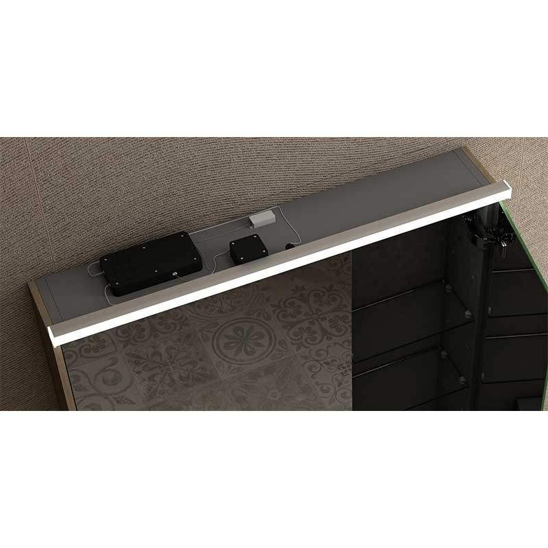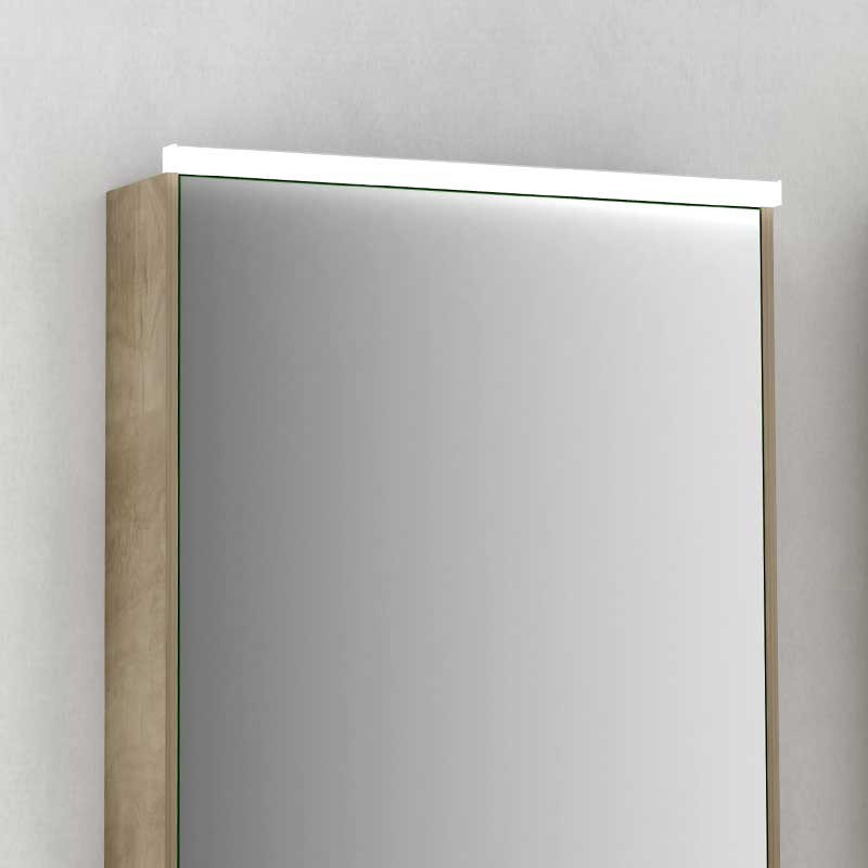 Aplique alongado para camarim Skyline com iluminação led e sistema de alto-falantes Bluetooth. Disponível em várias medidas.