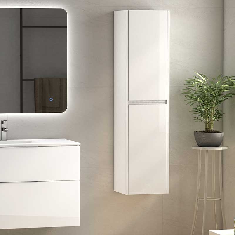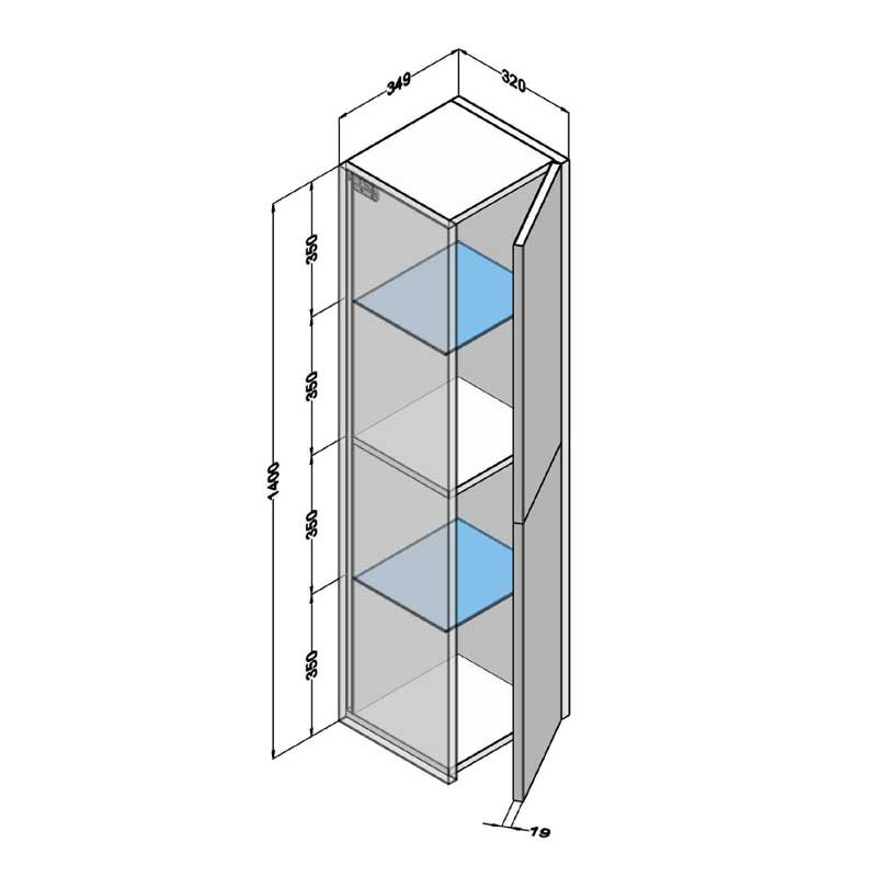 Expanda Rack coluna para pendurar-se na parede modelo Coringa de 2 portas providas de dobradiças com sistema de fecho amortecido e 2 prateleiras de vidro no seu interior.