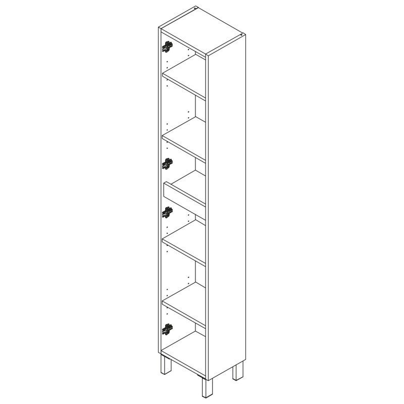 O pilar Infinity redefine a modernidade e funcionalidade na sua casa de banho, oferecendo uma grande capacidade de armazenamento com quatro prateleiras reguláveis em madeira. Com medidas de 300x1810x240mm e duas portas, este pilar Fornece espaço generoso para organizar seus itens de banheiro de forma eficiente.