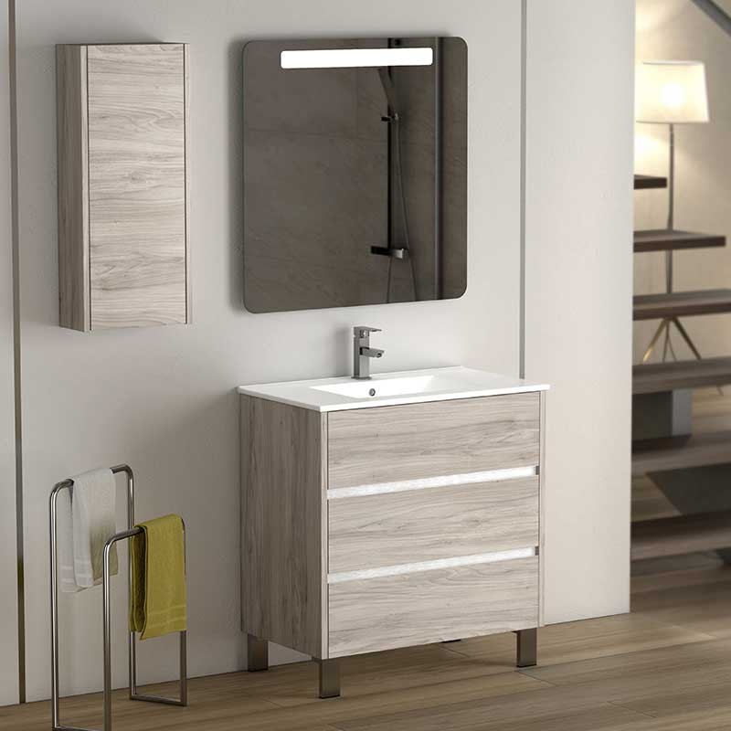 Expanda Armário para o chão, casa de banho modelo Escorpião com 3 gavetas grandes e lavatório bancada de cerâmica. Espelho diodo emissor de luz Chuva e móvel auxiliar opcional.