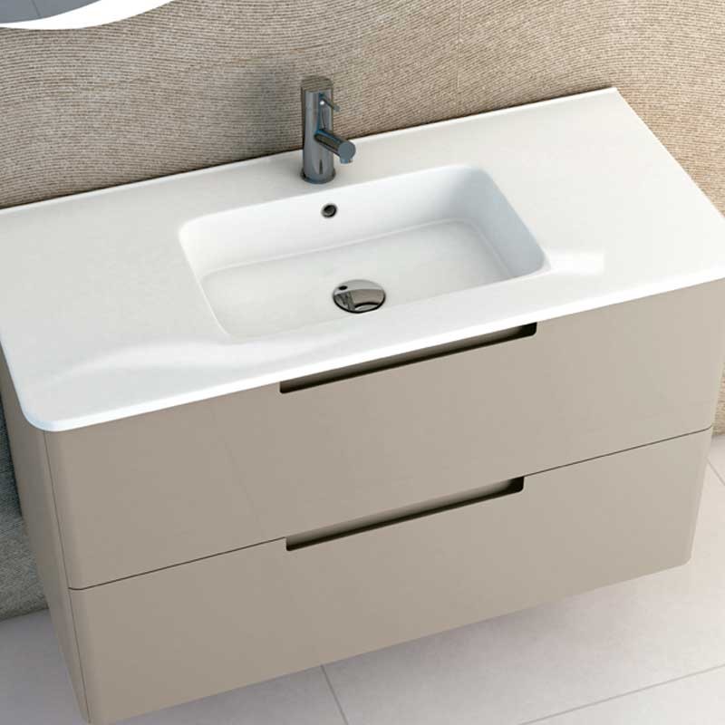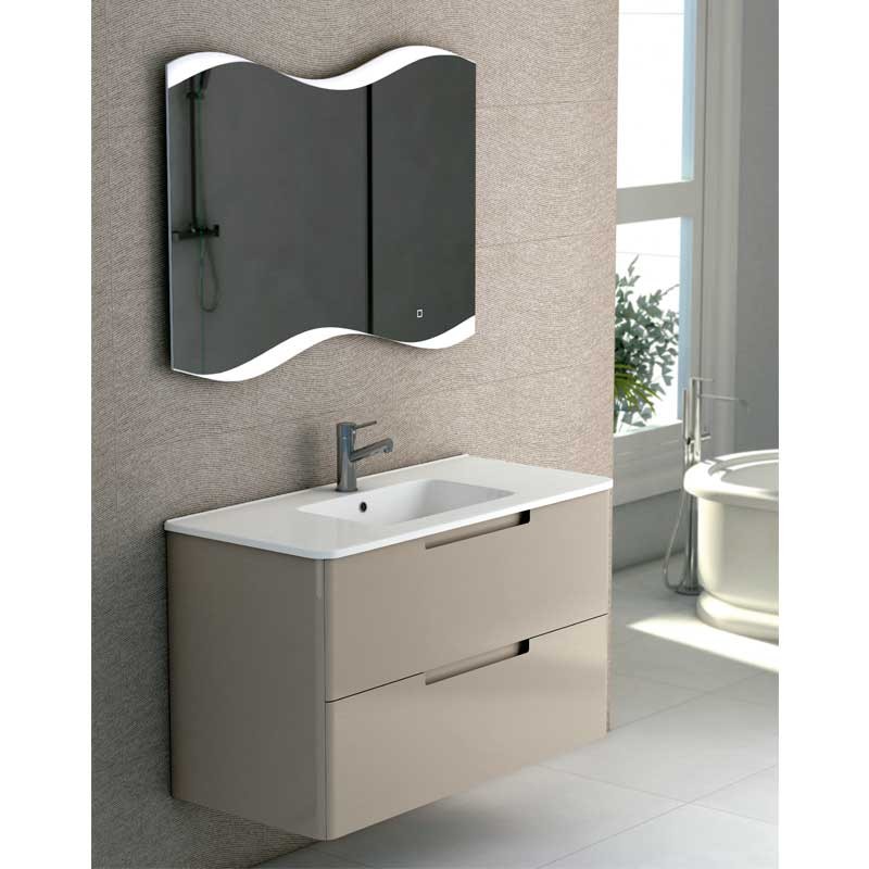 Expanda Armário suspenso para banho modelo Omega com 2 gavetas grandes, mas lavatório bancada de cerâmica. Espelho diodo emissor de luz modelo Modena opcional.