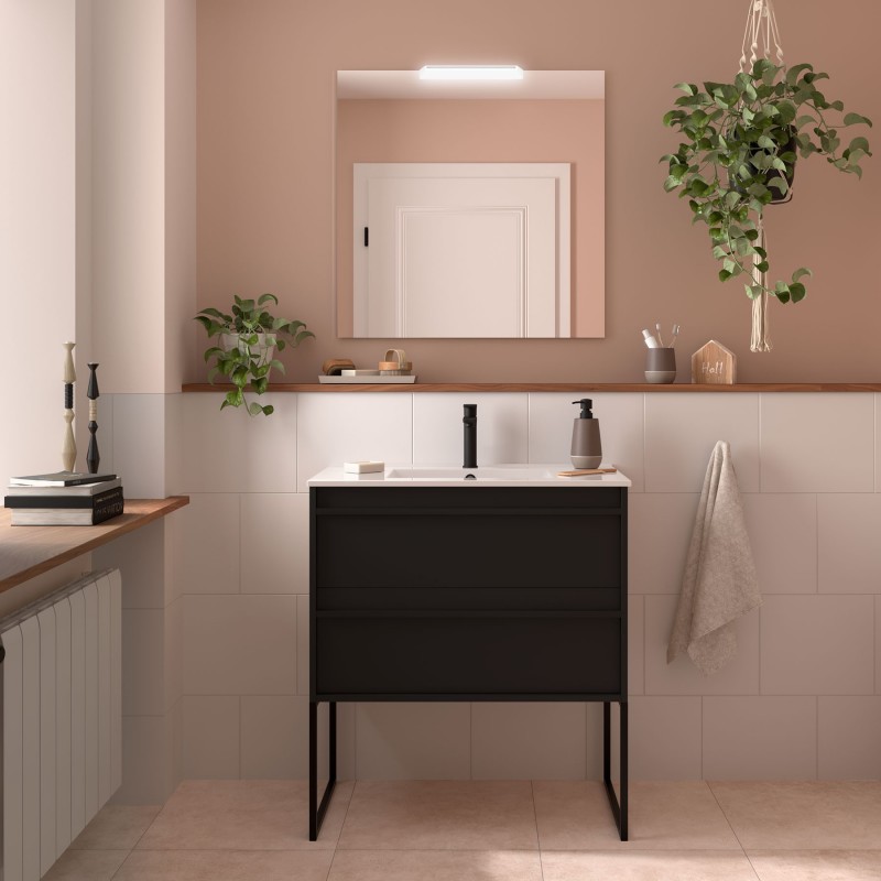 Com linhas retas e simples, e um design minimalista combinado com detalhes metálicos, este mobiliário transformará a sua casa de banho num espaço urbano e contemporâneo.