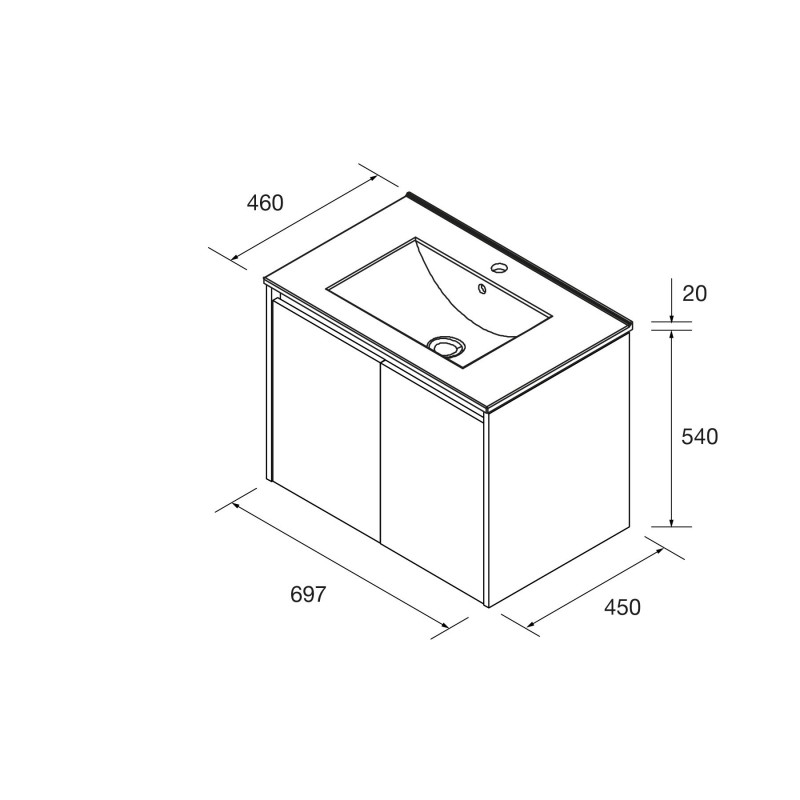 Expanda O mobiliário de casa de banho Noja 70 de 2 portas Armário + lavatório oferece versatilidade e estilo. Com várias opções de design, acabamentos e soluções de armazenamento aprimoradas, este conjunto é ideal para criar o banheiro dos seus sonhos. Gavetas com fecho almofadado e lavatório de porcelana integrado completam o conjunto.