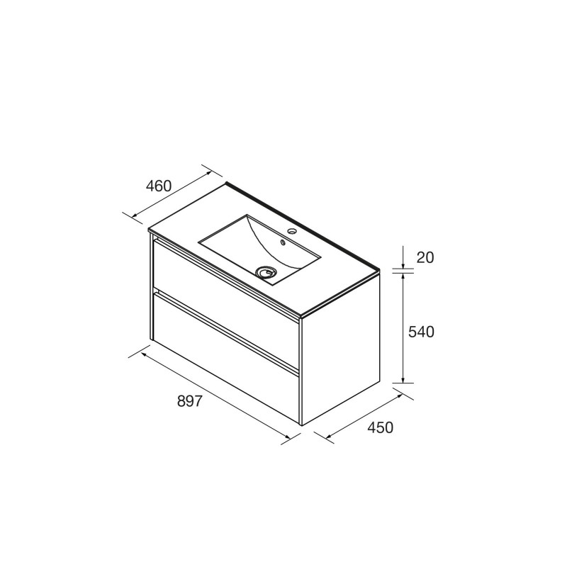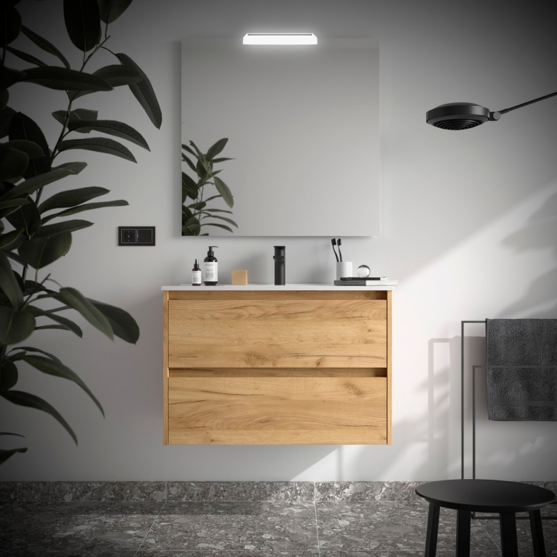 Composto de móveis Noja com 2 gavetas e lavatório de porcelana.