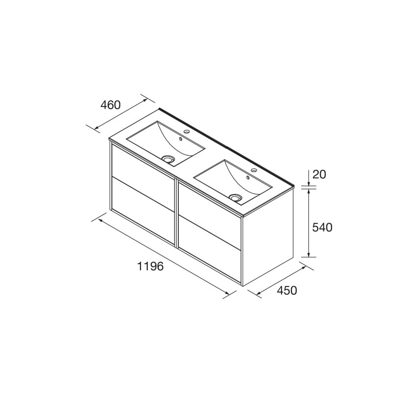 Detalhes de qualidade: O conjunto inclui um armário de banheiro com lavatório integrado, caracterizado por suas duas gavetas com guias ocultas, fechamento amortecido e regulação em altura, oferecendo funcionalidade e estética. O lavatório integrado, fabricado em porcelana branca, garante resistência e durabilidade.